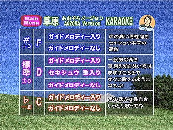 「草原」カラオケを選ぶと表示されるサブメニュー